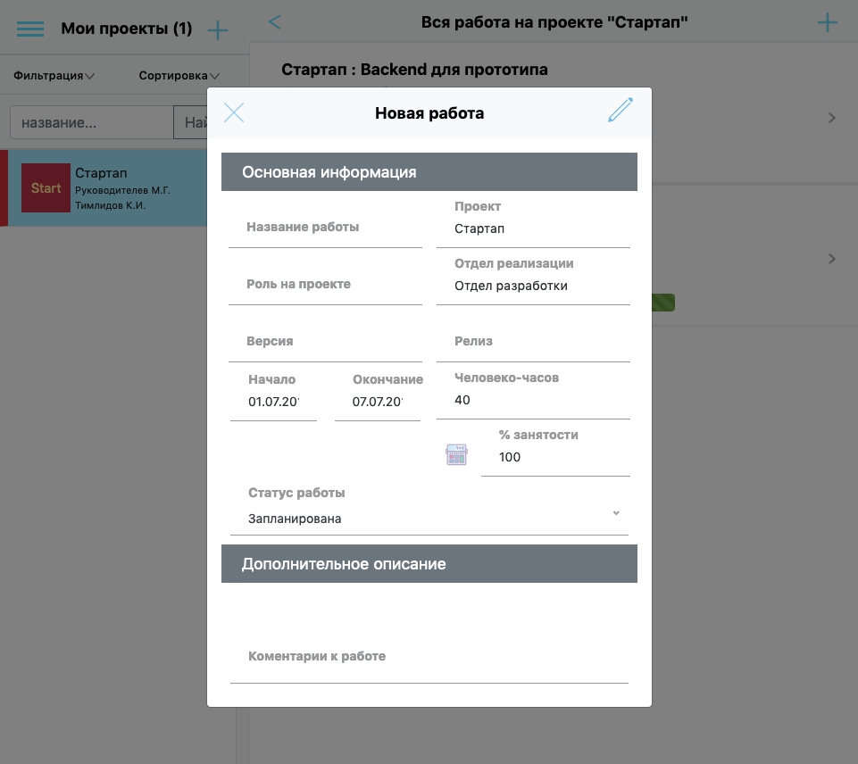 сотрудника в заданный период, вам необходимо выбрать значение "Вне работы", и тогда вам откроются проекты